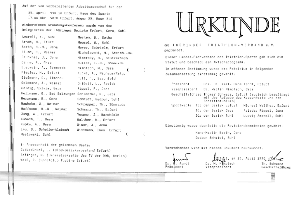 Ludwig Amarell war Gründungsmitglied des Thüringer Triathlon-Verband und erster Sportwart für den damaligen Bezirk Suhl.